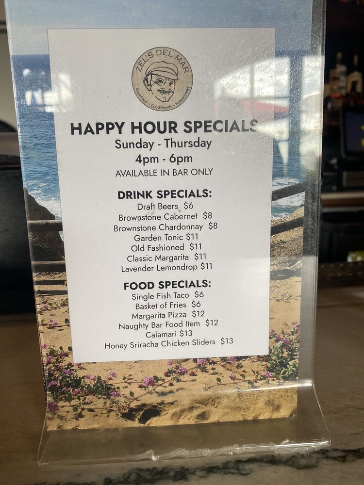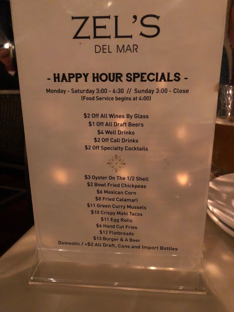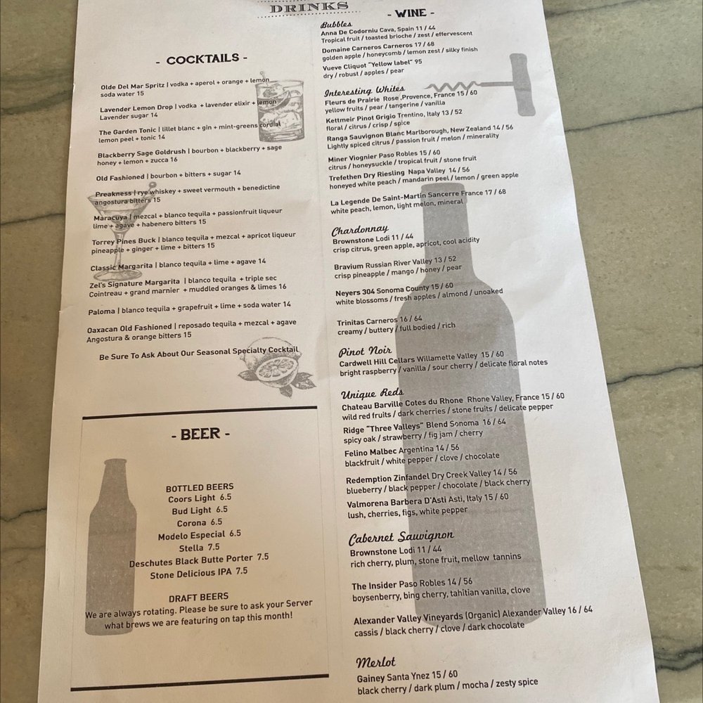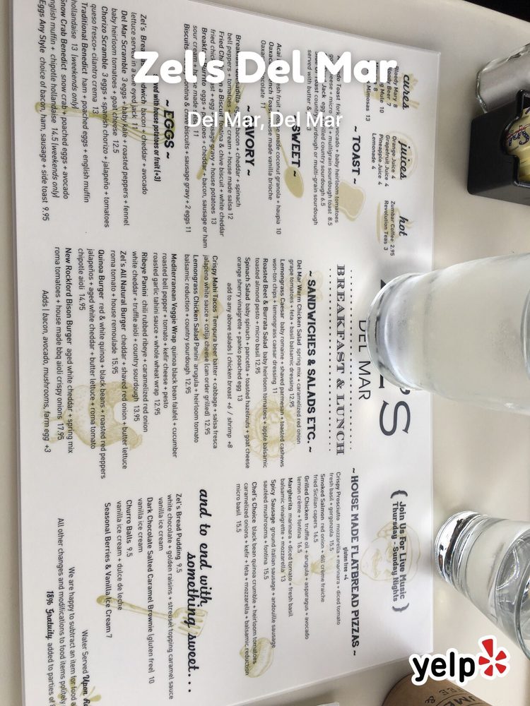 Zel's Del Mar in Del Mar, CA offers a wide range of New American cuisine with a vibrant bar setting. Known for its vegan and vegetarian options, the restaurant also provides takeout, delivery, and catering services. The menu features delectable desserts like Dark Chocolate Salted Caramel Brownie and Zel's Signature Bread Pudding, along with savory entrees like Flat Iron Steak and Market Fish. Customers rave about the exceptional service and delicious food, with highlights including the fish tacos, short rib dish, and happy hour specials. The cozy ambiance, live music, and outdoor seating make it a perfect spot for dinner with friends or family. Zel's Del Mar is a must-visit destination for food enthusiasts looking for a memorable dining experience.